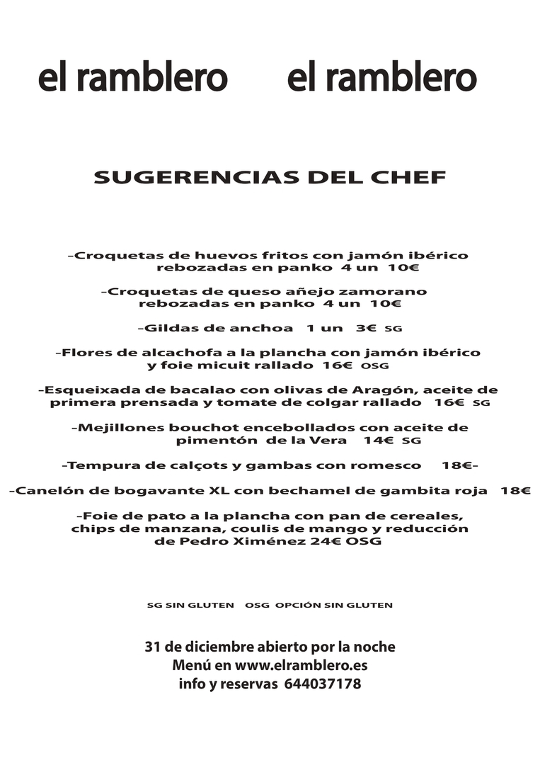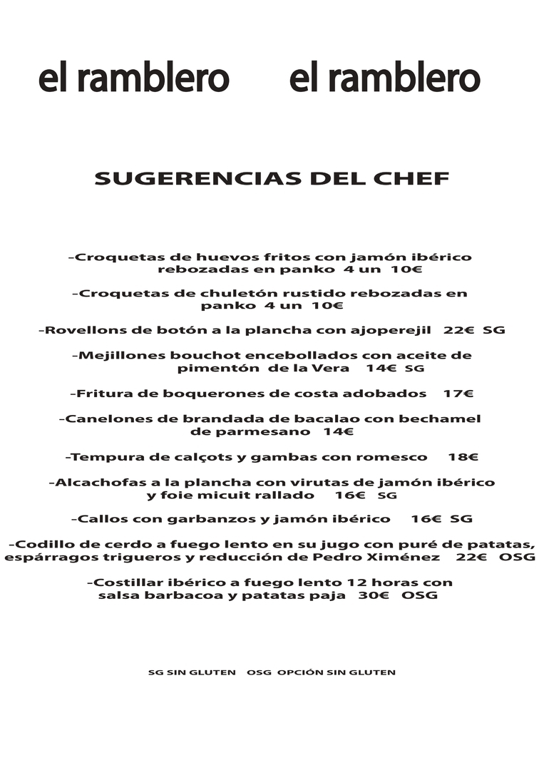 Los fines de semana el Chef prepara unos cuantos platos de sugerencias para que nuestros clientes puedan probar propuestas diferentes de la carta.